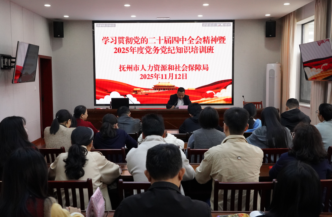 为深入学习贯彻党的二十届四中全会精神,巩固拓展深入贯彻中央八项规定精神学习教育成果,增强党务干部和党员业务能力,提升全局党员干部作风建设和纪律意识,11月12日,市人社局举办了学习宣传贯彻党的二十届四中全会精神暨2025年度党务党纪知识培训班,局党组成员、副局长徐新华出席开班式并作宣讲。